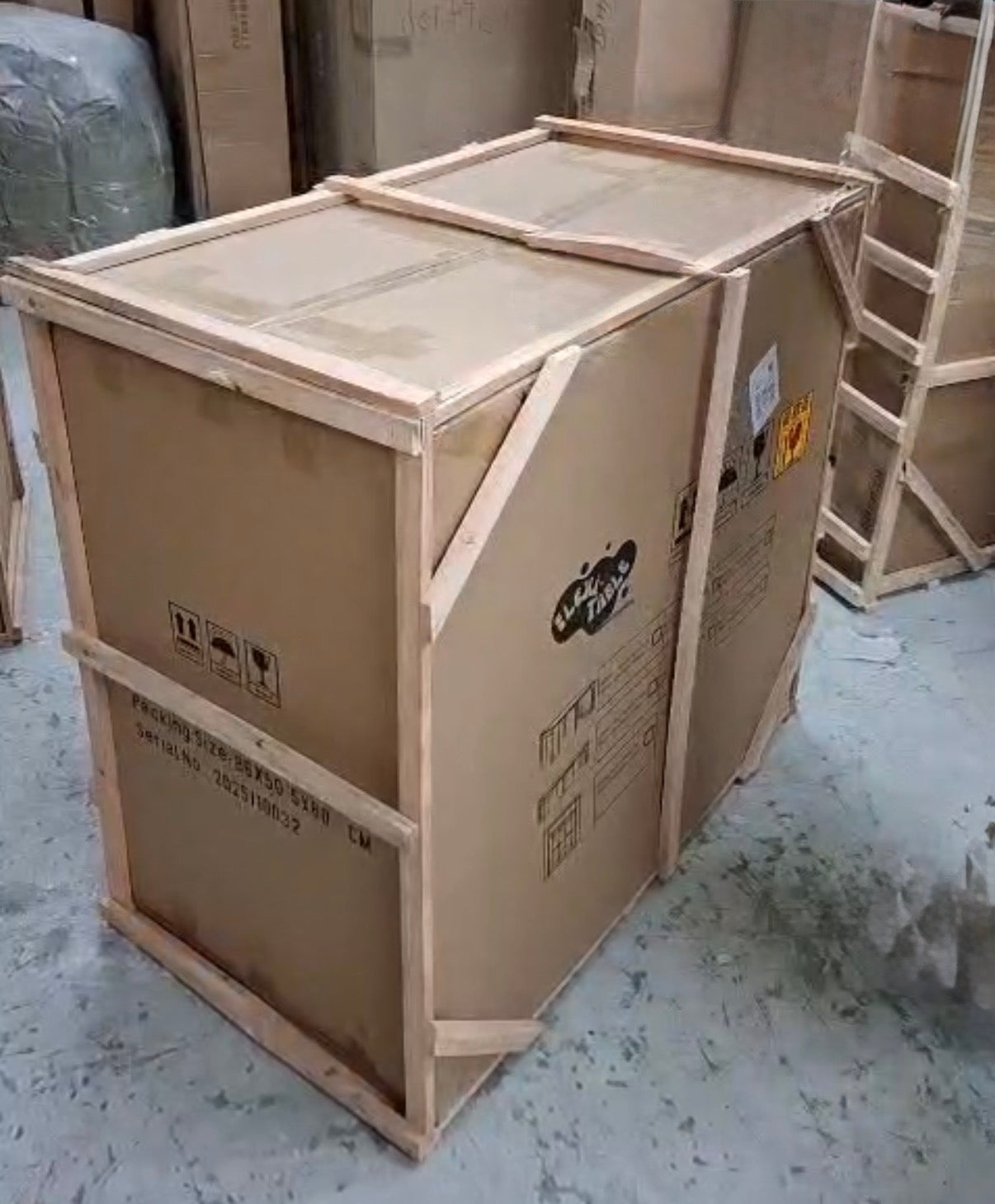 如果您的包裹帶有木製保護架,請使用螺絲起子撬開並移除紙箱周圍的木架。