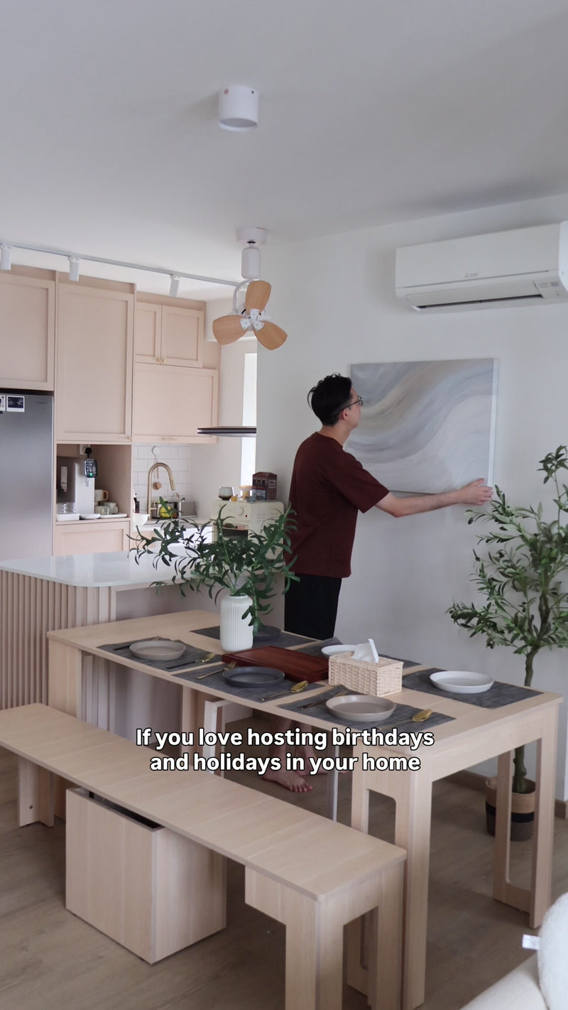 從沒想過一張桌子能如此融入生活的每一面 🍃 無論是兩人溫馨晚餐、朋友週末小聚,還是臨時家庭聚會,它都能從容應對 ✨ 不用時秒變簡約邊幾,省空間、多功能,完美融入家中氛圍。
